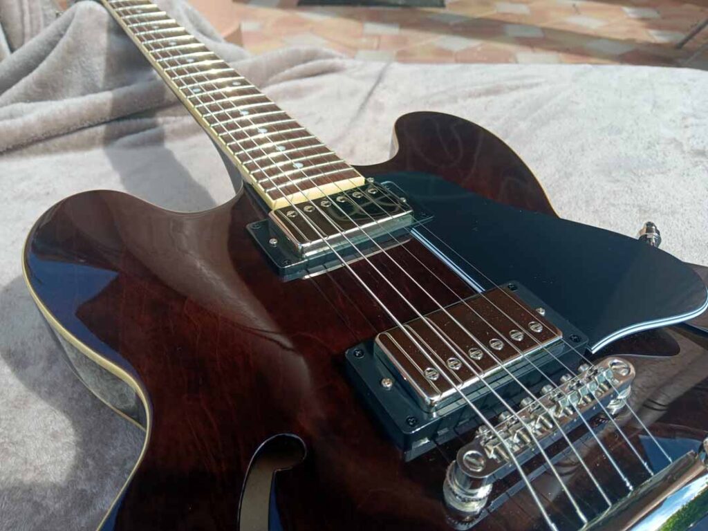I had a moderate interest in the instrument prior to this month because I found the color to be fascinating, although a bit darker than I generally prefer. There were some upgrades as compared to the 335 Dot, such as Kluson tuners and it did include a case. But nothing that would ever justify a $300 premium.
